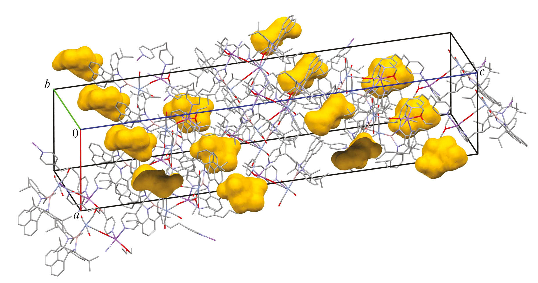 Рис. 5. Визуализация пустот в кристалле II с использованием программы Mercury [39].