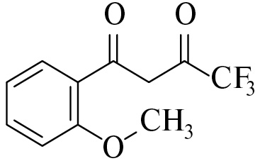 Синтез 1,1,1-трифтор-4-(2-метоксифенил)бутан2,4-диона (HL). К раствору 75 ммоль (8,9 мл) этилтрифторацетата в 30 мл сухого тетрагидрофурана добавляли 151 ммоль (1,2 г) мелко растертого гидрида лития. При нагревании и перемешивании добавляли 82 ммоль орто-метоксиацетофенона. Реакцию проводили при интенсивном перемешивании и кипячении в течение 5 ч. Реакционную массу охлаждали до комнатной температуры, растворитель отгоняли при пониженном давлении. Остаток растирали с уксусной кислотой, целевой продукт экстрагировали из водного раствора в хлороформ, объединяли органические фракции, промывали водой, сушили над безводным Na2SO4. Растворитель отгоняли при пониженном давлении и остаток перекристаллизовывали из хлороформа. Выход 12.4 г (67%).
