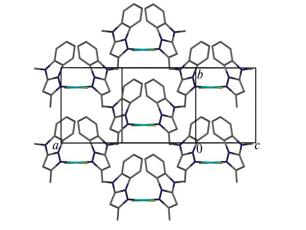 По данным РСА, комплекс III кристаллизуется в моноклинной сингонии (табл. 2). В независимой части ячейки присутствует половина молекулярного комплекса III, положение атома Cu совпадает с осью 2 вдоль параметра b (рис. 2).