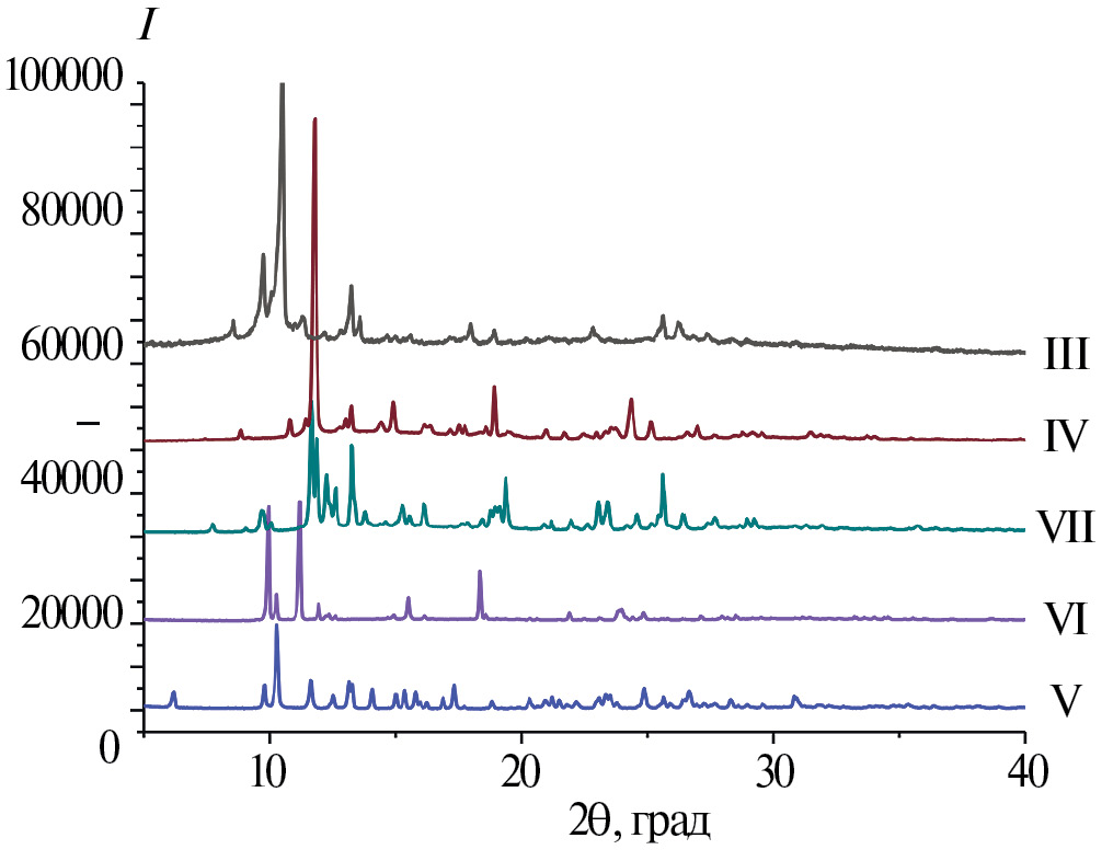 Таблица 1. Результаты элементного анализа комплексов I–VII