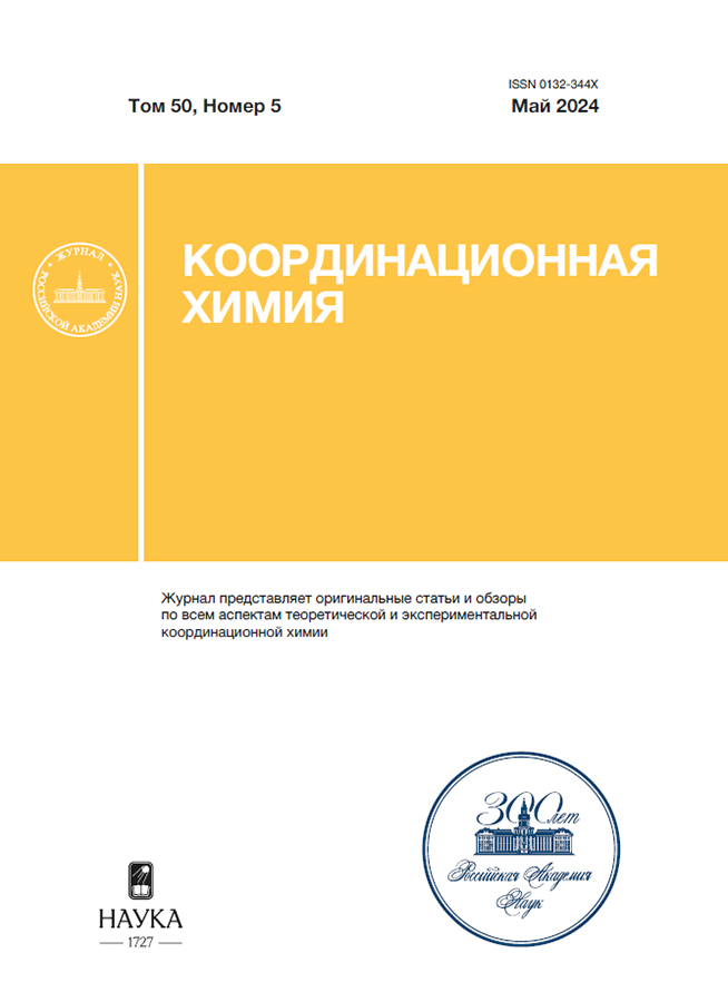 Five coordination compounds of the general formula [LnL2(NO3)3]n (Ln3+ = Eu (I), Sm (II), Tb(III), Dy (IV), and Gd (V)) are synthesized from 2-[((4-chlorophenyl)amino)methylene]-5,5-dimethylcyclohexane-1,3-dione (L). The crystal structures of the ligand and complex III are determined by X-ray diffraction (XRD) of single crystals (CIF files CCDC nos. 2298715 (L) and 2298716 (III)). Complex III is polymeric due to the bidentate-bridging coordination of the ligand by the oxygen atoms of the cyclohexanedione fragment, and the coordination number of the central atom is ten. According to the phase XRD data, all synthesized polycrystalline compounds are isostructural to the single crystals of complex III. The photoluminescence properties of the ligand and coordination compounds in the polycrystalline state are studied. The energy transfer from the ligand to lanthanide(III) ion is shown to proceed via the “antenna” mechanism in the case of the europium(III), samarium(III), and terbium(III) compounds. Among the series of the complexes, the highest quantum yield is observed for compound I (21.9%), and the sensibilization efficiency of the europium(III) complex is 43.5%.
