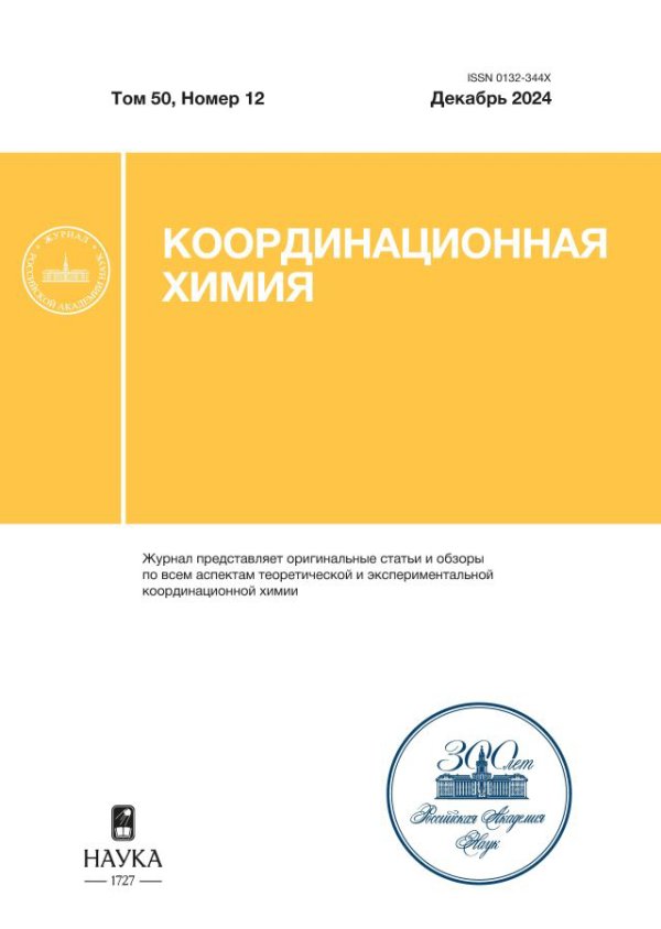 Синтезированы и структурно охарактеризованы гетеролептические комплексы тетрафторобората меди(I) с производными пиразоло[1,5-a][1,10]фенантролина (Ln, n = 1–3) и с бис[(2-дифенилфосфино)фениловым]эфиром (РОР). Комплексные соединения с общей формулой [CuLn(POP)]BF4 · Solv (n = 1, Solv = 0.5MeCN, комплекс I; n = 2, Solv = 0.5CH2Cl2, комплекс II; n = 3, Solv = 1.25Et2O, комплекс III · Et2O) получены по реакции CuBF4, Ln и POP в органических средах (MeCN/CH2Cl2/Et2O) при мольном соотношении 1 : 1 : 1. Соединение III · Et2O постепенно теряет сольватные молекулы и переходит в комплекс [CuL3(POP)]BF4 (III). По данным рентгеноструктурного анализа показано, что комплексы (I, II, III · · Et2O) имеют ионное строение, в комплексном катионе [CuLn(POP)]+ атом меди находится в искаженно-тетраэдрическом окружении CuN2P2. Для трех полученных комплексных соединений (I–III) исследованы фотолюминесцентные свойства в твердом состоянии и в растворе. В спектрах поглощения комплексов при 380–385 нм наблюдаются полоса переноса заряда, при возбуждении в этом диапазоне в растворе наблюдается две полосы эмиссии: при 480 и 650 нм. В твердом состоянии комплексы обладают фотолюминесценцией только в красном диапазоне (λмакс = 600–610 нм) с микросекундными временами жизни. Установлено, что комплексы I и III с более правильным тетраэдрическим окружением имеют квантовые выходы, которые на порядок больше квантового выхода комплекса II.
