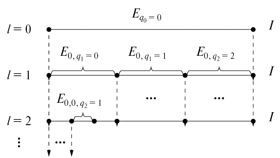 Описание структуры ограниченного числового множества на основе р-адических шаров. В работе [10] были предложены подход и алгоритм представления произвольного подмножества A I как образа множества р-адических шаров. При этом множество I представлялось в виде иерархической структуры подмножеств, которые удовлетворяют условиям: