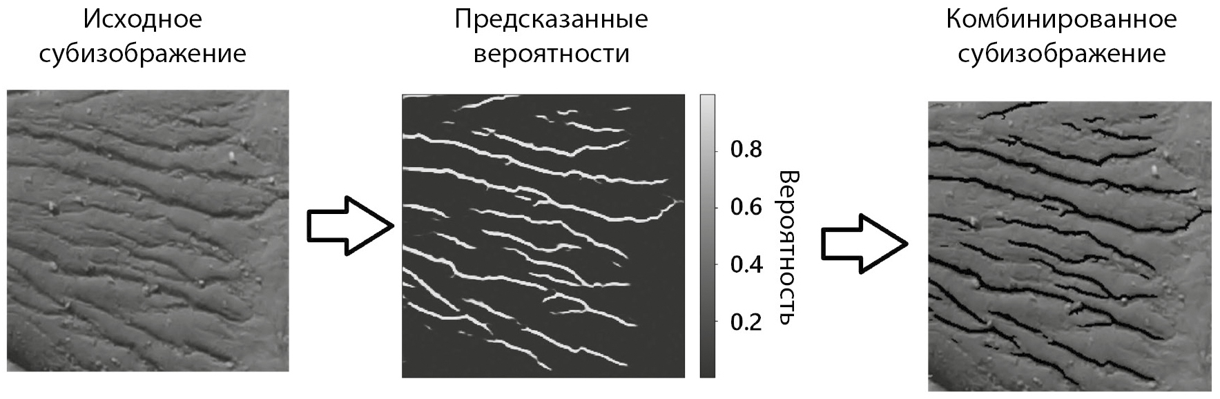 Рис. 8. Схема процесса детектирования трещин для тестового субизображения.