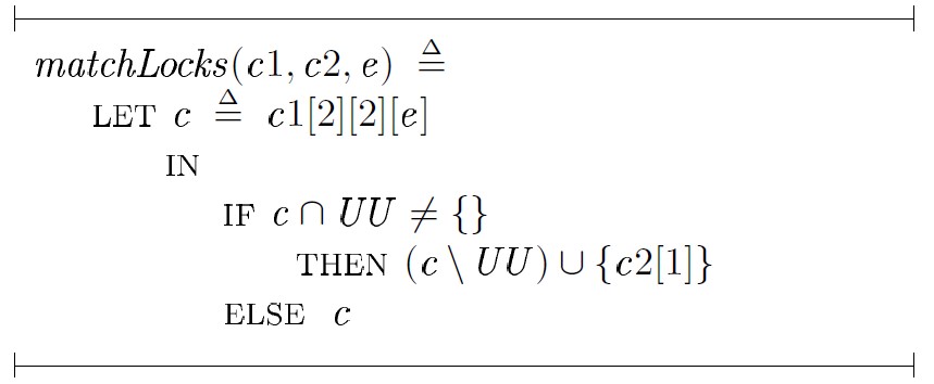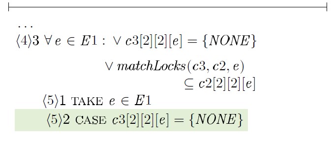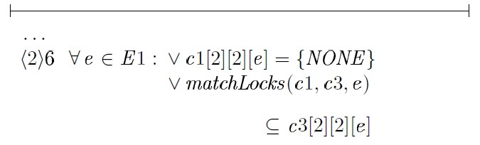 В этом случае требуется доказательство истинности matchLocks(c1,c3,e) ⊆ c3[2][2][e]. Если c1[2][2][e] ∩ UU ≠ {}, доказательство может быть получено следующим образом: