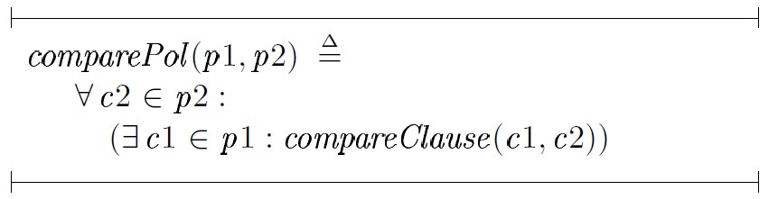 ∀c2 ∈ pol : (∃c1 ∈ pol : compareClause(c1,c2)),