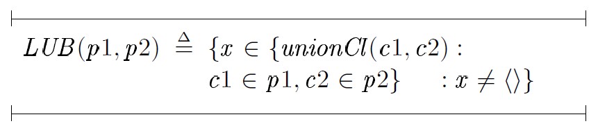 Здесь функция unionCl(c1, c2) вычисляет новое предложение политики pLUB на основе предложений c1 и c2, если существует соответствующая подстановка, или возвращает пустое предложение ⟨⟩: