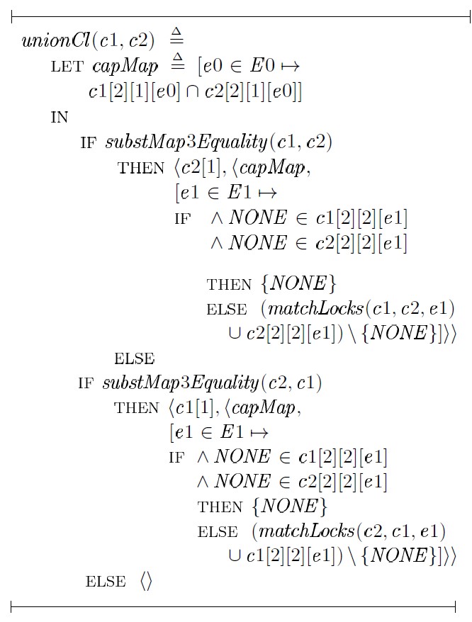 Локальная функция capMap объединяет непараметрические блокировки предложений c1 и c2 (поле, соответствующее непараметрической блокировке, принимает значение {NONE}, если блокировка не требуется, в противном случае — {}).