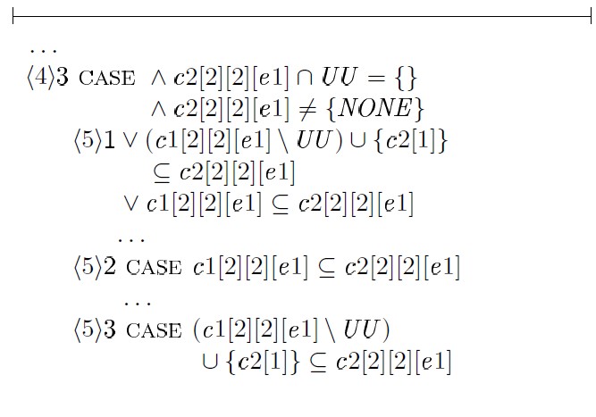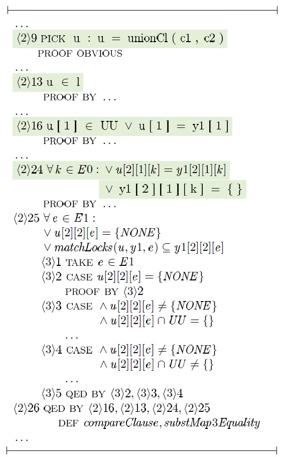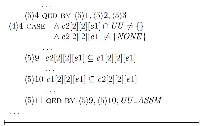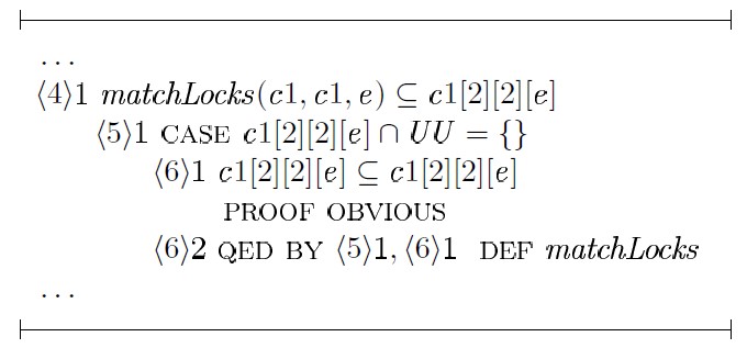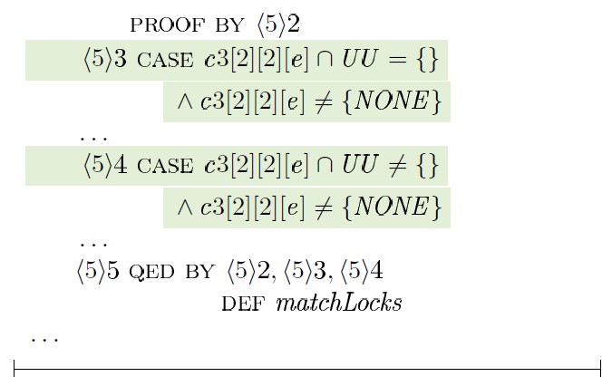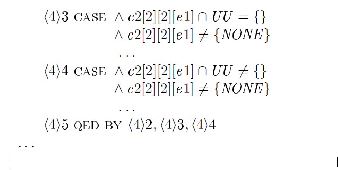 Использование таких средств, как TLAPS, безусловно влечет дополнительные трудозатраты, вызванные необходимостью трансляции доказательств в формулы TLA+, но в то же время предоставляет дополнительные гарантии корректности получаемых результатов.