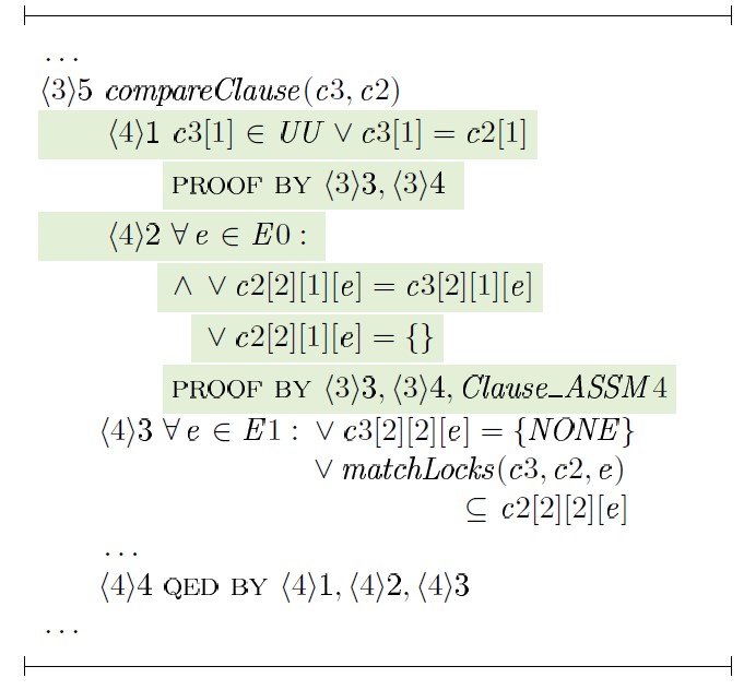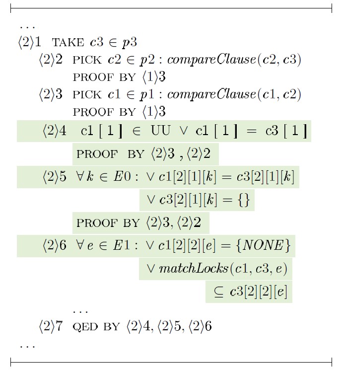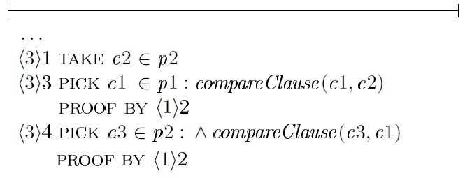 Далее в пояснениях к выражениям TLAPS в некоторых случаях вместо compareClause(·) и comparePol (·) будем использовать оператор.