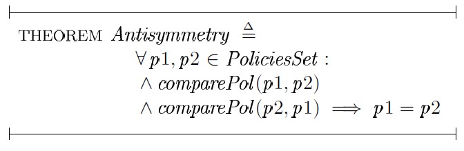 Свойство антисимметричности отношения частичного порядка на множестве политик безопасности PoliciesSet можно выразить следующим образом:
