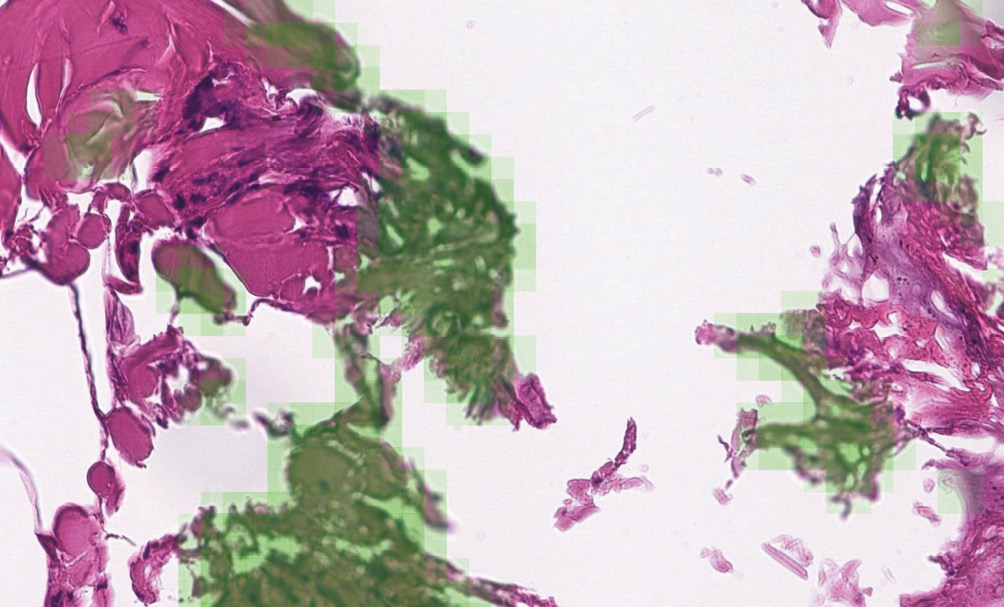 Современная гистопатологическая диагностика включает в себя извлечение образцов тканей и проведение гистотехнических процедур для подготовки оцифрованного предметного стекла, называемого полнослайдовым изображением (WSI), для дальнейшего исследования. Неправильное обращение с образцом ткани может привести к появлению артефактов (областей, не имеющих диагностического значения, поскольку внешний вид ткани изменен или поврежден) в полученном WSI [26], что может влиять на системы вычислительной патологии и на поставленный диагноз, если их не исключить или не обработать. Недавние работы по WSI с использованием методов глубокого обучения для диагностического прогнозирования в основном основывались на ручном выборе областей интереса (ROI) без артефактов, имеющих диагностическую значимость [27]. Однако ручной выбор трудоемок и требует много времени. И, поскольку артефакты, включенные во время обучения или вывода, могут ухудшить результаты прогнозирования, то необходимо разрабатывать алгоритмы и программы по автоматическому обнаружению артефактов.