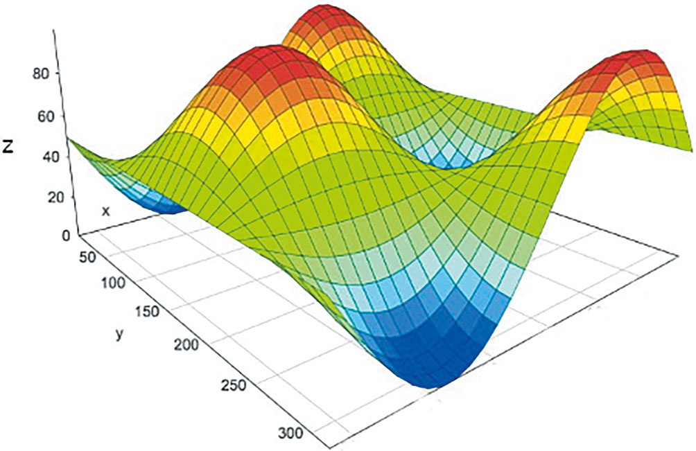 Перед тем как исследовать конкретное пятно изображения на сложность сначала необходимо определить границы этого пятна. Для этого мы используем алгоритм WaterShed [5]. Суть алгоритма WaterShed – разбиение изображения на множество покрывающих его областей. За основу этого алгоритма был выбран алгоритм сегментации по водоразделам. Если значение яркости изображения откладывать по оси OZ, то в местах наибольшей интенсивности образуются “хребты”, наименьшей – “впадины”, а в однородных регионах – равнины (см. рис. 3).