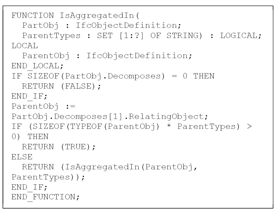 Рис. 3. Функция на языке EXPRESS для определения наличия отношений агрегации.
