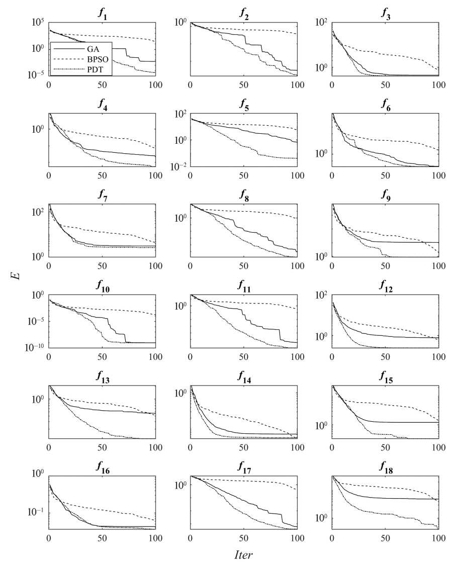 f | GA | BPSO | PDT | |||