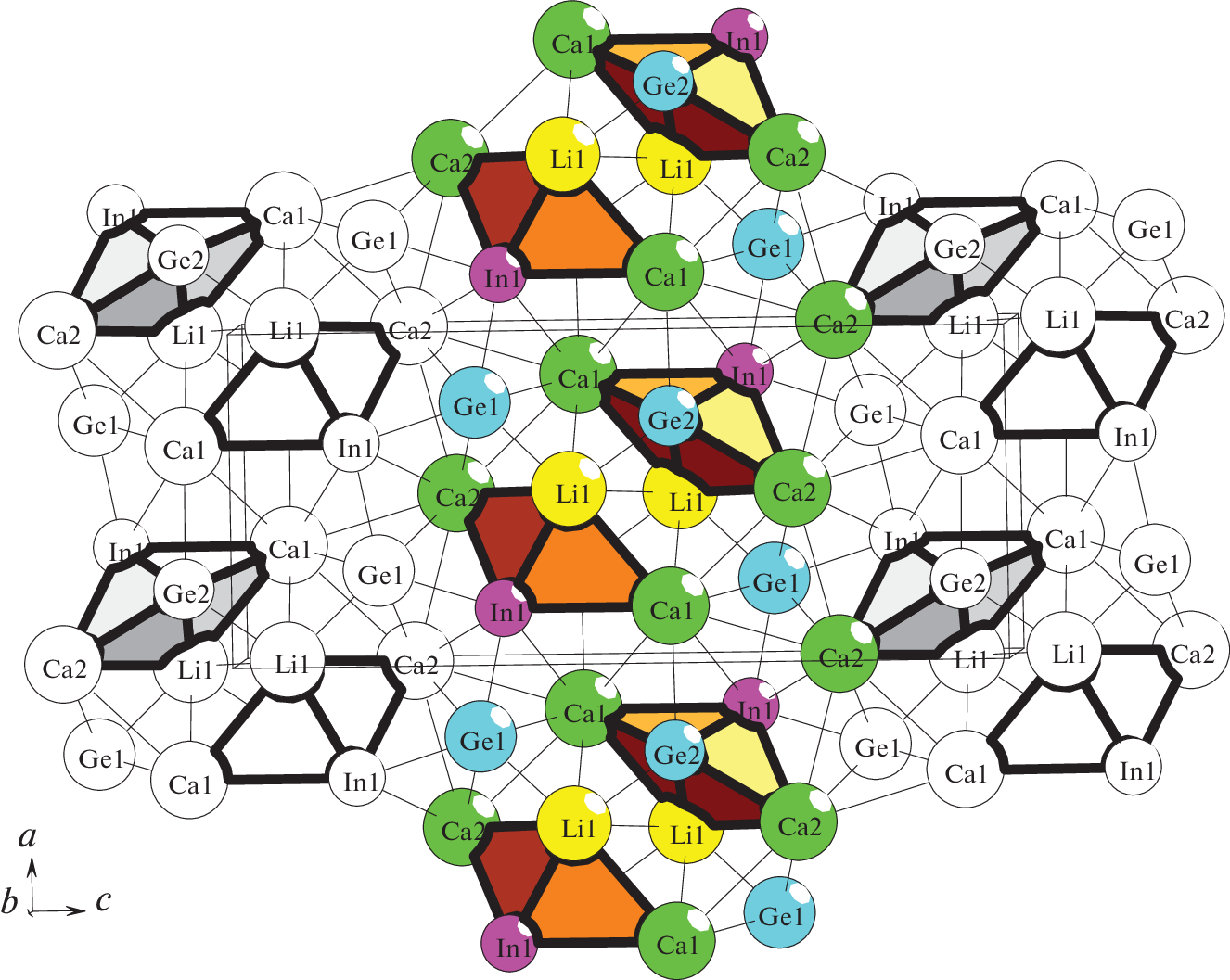 - Mao J.-G., Xu Z.-H., Guloy A.M. Synthesis and crystal structure of Ae2LiInGe2 (Ae = Ca, Sr): new Zintl phases with a layered silicate-like network // Inorg. Chem. 2001. V. 40 P. 4472–4477