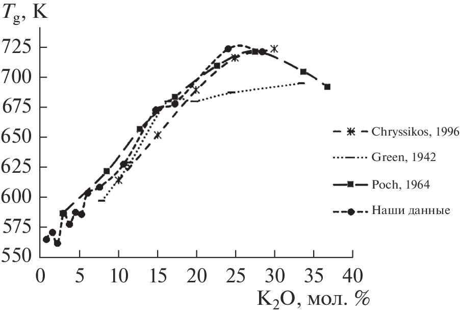 - Green R.L. X-ray diffraction and physical properties of potassium borate glasses // J. American Ceramic Society. 1942. V. 25. № 3. P. 83.