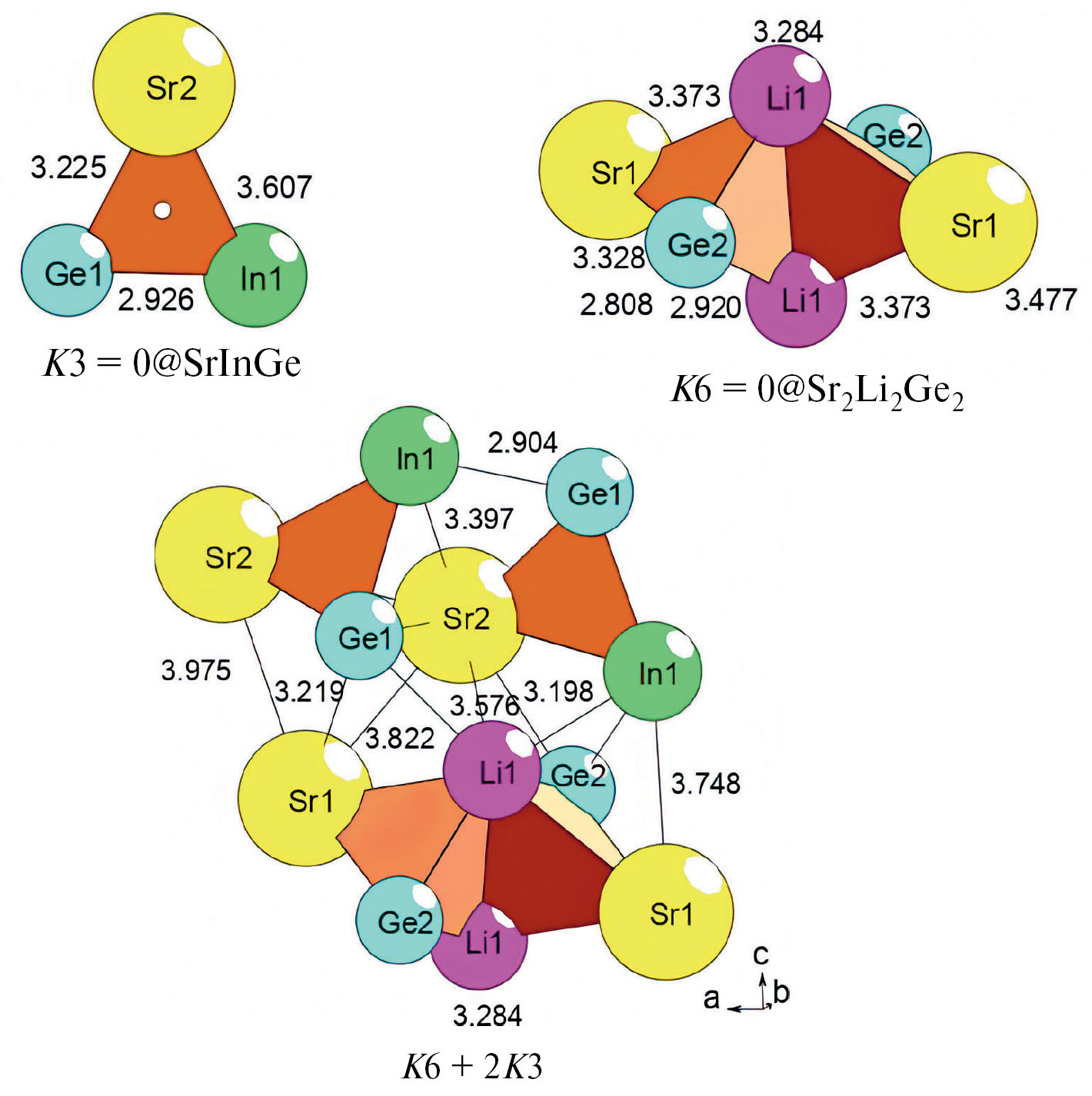 Рис. 5. Sr2LiInGe2-oP24. Кластерные прекурсоры.