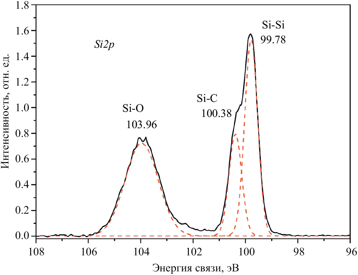 Рис. 5. РФЭС-спектр монокристаллического кремния с алмазоподобным покрытием для области Si2p