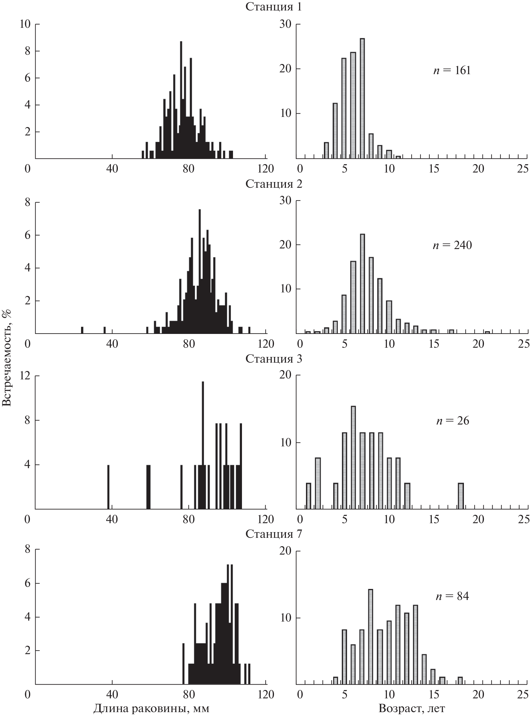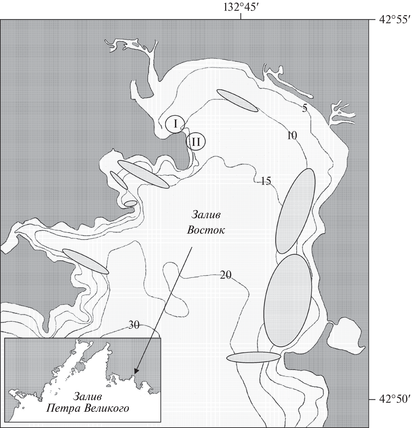 In July–August 2022, the spatial distribution and the composition of local aggregations of the bivalve mollusc Mya japonica Jay, 1857 in the Vostok Bay (Peter the Great Bay of the Sea of Japan) were studied. M. japonica occurred almost throughout the entire bay in a wide range of depths from 0 to 22 m at water temperatures from –1.9 to 25°С and salinity from 0 to 34‰. M. japonica was the most abundant in the shallow areas of the bays, closed from the direct wave impact, where, at a depth of up to 4–5 m, the density of the mollusc reached 27 ind./m2, and the biomass was almost 4 kg/m2, which averaged 56% of the total macrozoobenthos biomass. With increasing depth and moving from the dead-end of the bay to the open sea, the abundance of M. japo-nica decreased by one or two orders of magnitude. Local settlements differed significantly in size and age composition, size-frequency distribution of molluscs, indicating the nature of the replenishment of the benthic population with juveniles, as well as the proportion of commercial size individuals, which ranged from 37 to 98%. The reasons for the revealed features of the distribution and structure of the population of M. japonica are discussed.