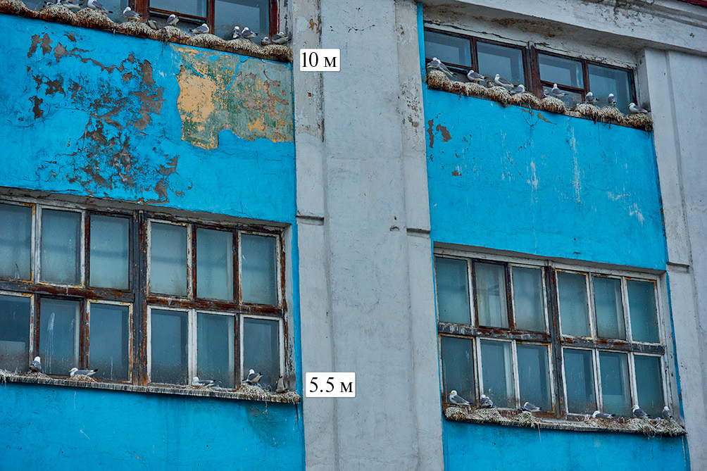 Рис. 2. Пример заселенности моевками оконных проемов, расположенных на разной высоте, в зоне сильного беспокойства (вблизи грузового причала)