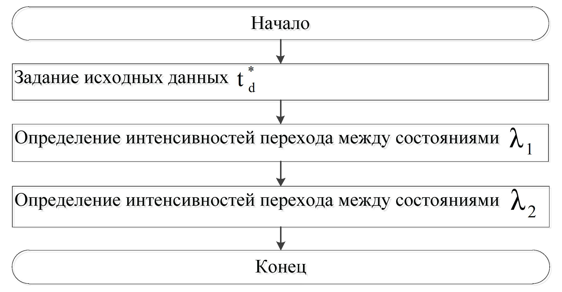 Шаг 2. Определяют интенсивность переходов между состояниями путем решения уравнения (8) известным численным методом.