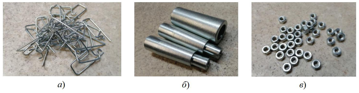 Рис. 5. Оцинкованные детали: а – шпильки; б – втулки; в – гайки