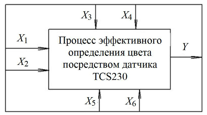 В качестве входных управляемых величин (рис. 3), влияющих на процесс эффективного определения цвета посредством датчика определения цвета TCS230, выделены факторы: