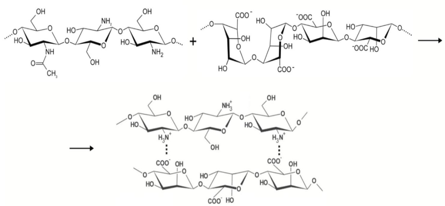 Рис. 3. Механизм образования полиэлектролитного комплекса «альгинат – хитозан»