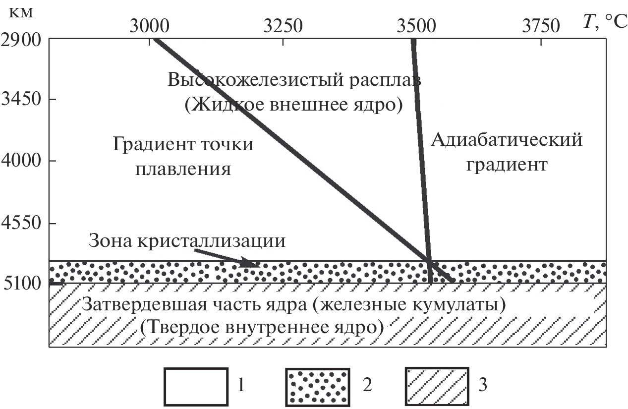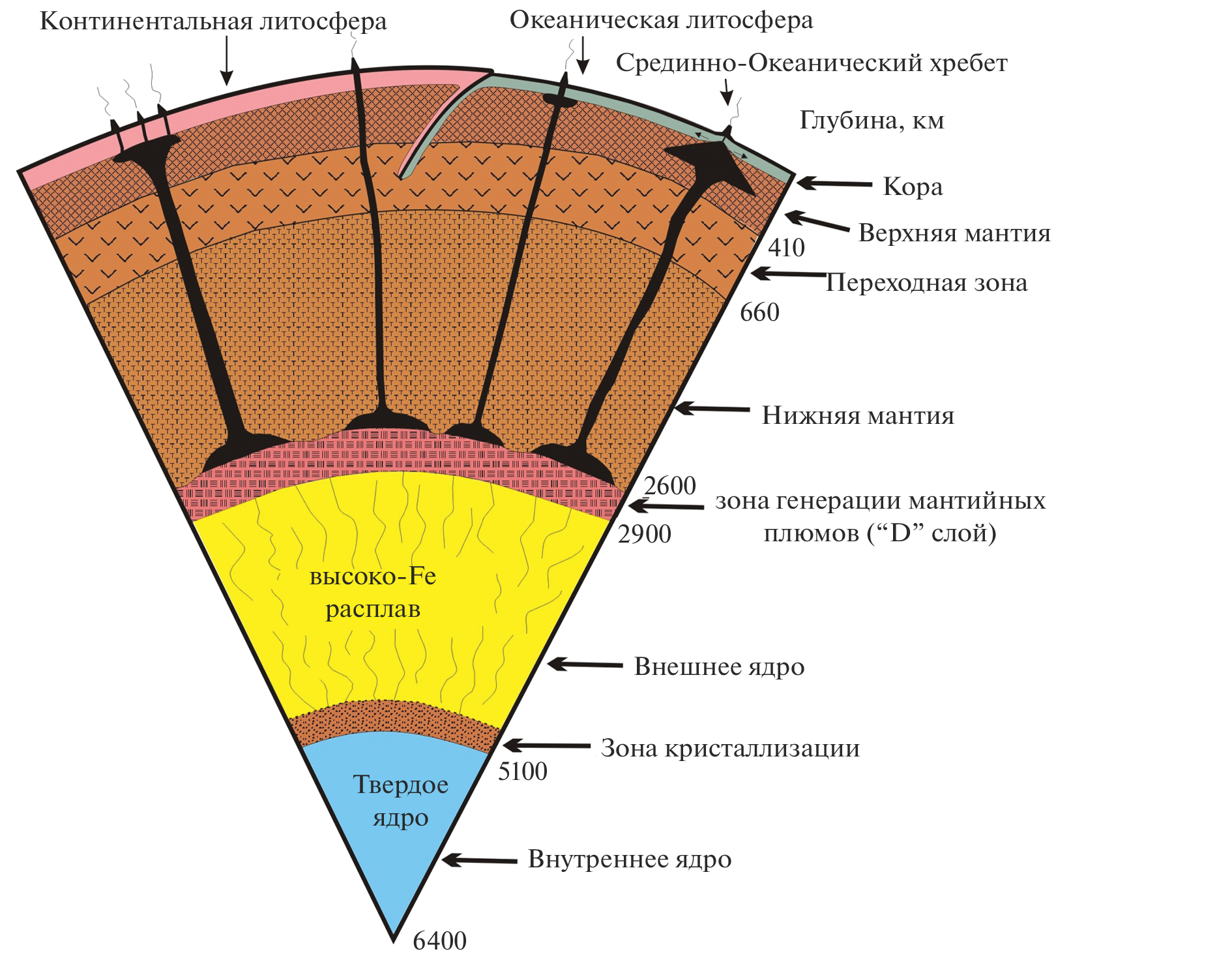 Как известно, в истории Земли периодически происходит активизация тектономагматических процессов, когда без видимых внешних причин они резко усиливаются. Очевидно, все это связано с особенностями развития глубинных петрологических процессов, своеобразным отражением которых и являются события во внешних оболочках современной Земли (тектоносфере), однако суть этих процессов и механизмы их трансляции в тектоносферу остаются слабо изученными. Мы рассмотрели эту проблему на примере ее Позднекайнозойской (неоген-четвертичной) глобальной активизации. Как известно, современная Земля является охлаждающимся телом с затвердевающим жидким железным ядром. Этот процесс должен сопровождаться целым рядом термодинамических, физических и физико-химических эффектов, которые и могли бы привести к внутренней активизации нашей планеты. Мы постарались разобраться в этих проблемах с помощью имеющихся современных геологических, петрологических, геохимических и геофизических данных по активизации, происходящей на наших глазах. Нами показано, что главным активным элементом в современной Земле должна быть постоянно движущаяся снизу вверх маломощная зона кристаллизации, расположенная между полностью затвердевшей частью ядра (твердое внутреннее ядро) и его еще полностью жидкой частью (внешнее жидкое ядро). Именно с этой зоной связаны разнообразные фазовые переходы в охлаждающемся расплаве при прохождении им точек бифуркации. Там происходят фазовые переходы как типа смены выделяющихся твердых фаз, которые наращивают внутреннее ядро, так и ретроградного кипения с образованием капель “ядерных” флюидов. Показано, что эти капли всплывают в высокожелезистом расплаве-хозяине и накапливаются в основании мантии. Там они участвуют в формировании мантийных плюмов, главных переносчиков глубинных импульсов во внешние геосферы, и вместе с ними окончательно покидают ядро. Предполагается, что в одной из таких точек произошло резкое падение растворимости флюидов в охлаждающейся высокожелезистой жидкости внешнего ядра. Это должно было привести к одновременной интенсификации ретроградного кипения этого расплава по всей поверхности зоны кристаллизации ядра, т.е. в глобальном масштабе. Это и могло обеспечить поступление избытка “ядерных” флюидов, необходимых для массового образования мантийных плюмов и послужить триггером для процессов Позднекайнозойской глобальной тектономагматической активизации Земли.