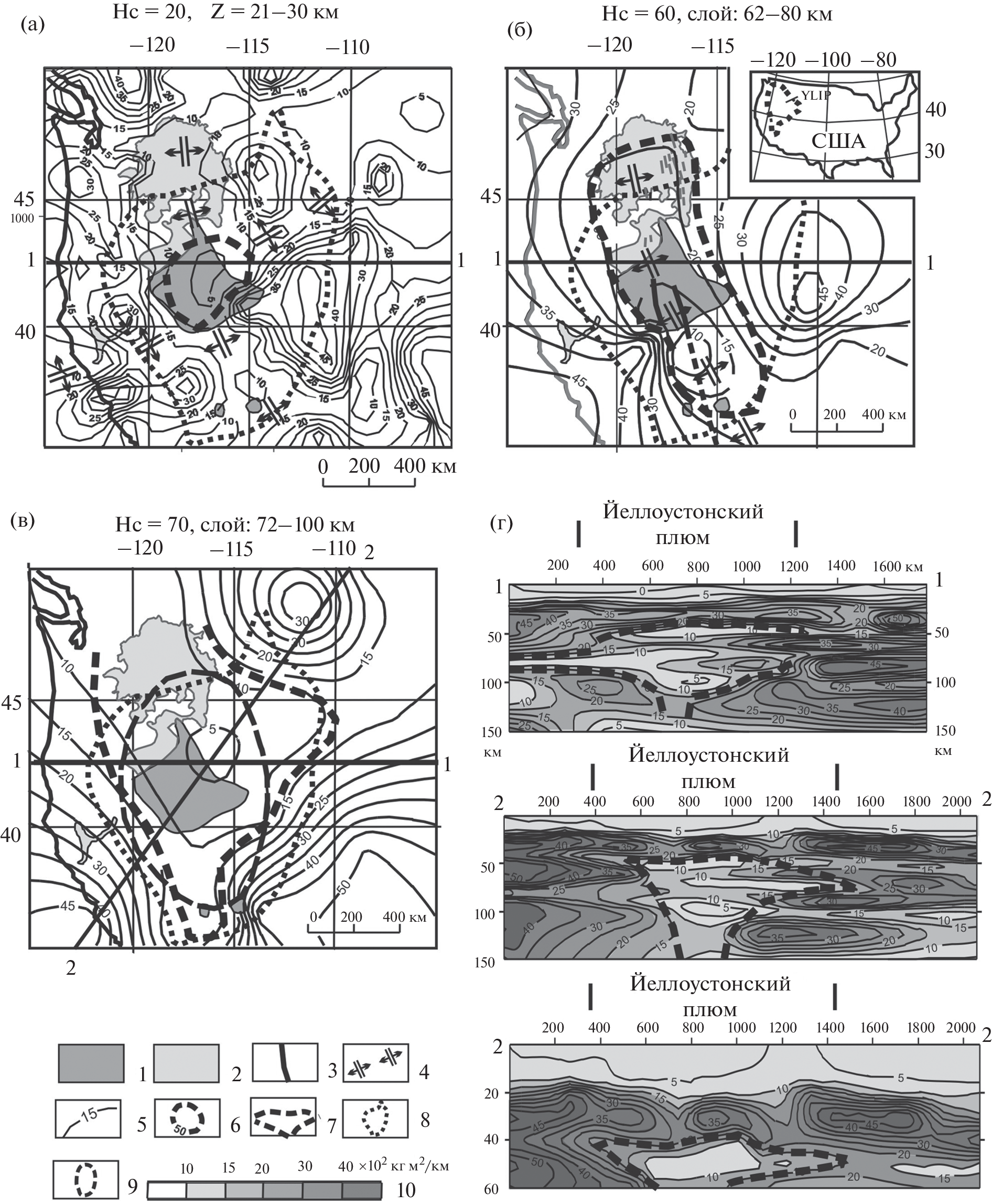 - DeNosaquo K.R., Robert B., Smith R.B. et al. Density and lithospheric strength models of the Yellowstone–Snake River Plain volcanic system from gravity and heatflow data // J. Volcanology and Geothermal Research. 2009. V. 188. P. 108–127.