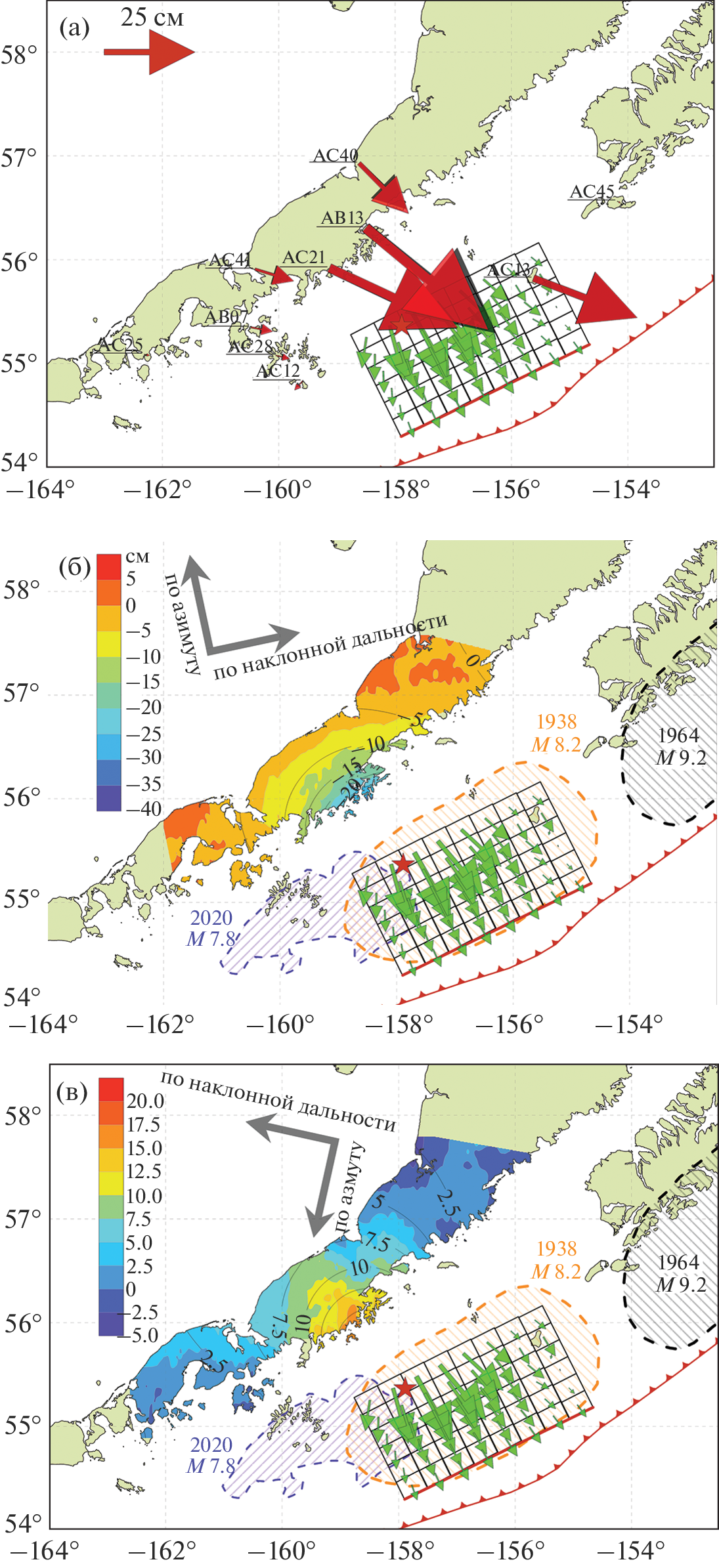 - Михайлов В.О., Тимофеева В.А., Смирнов В.Б., Тимошкина Е.П., Шапиро Н.М. Новая модель поверхности разрыва Ближне-Алеутского землетрясения 17.07.2017 г. Mw = 7.8 на основе данных спутниковой радарной интерферометрии // Физика Земли. 2022. № 2. С. 88–101. https://doi.org/10.31857/S0002333722020089