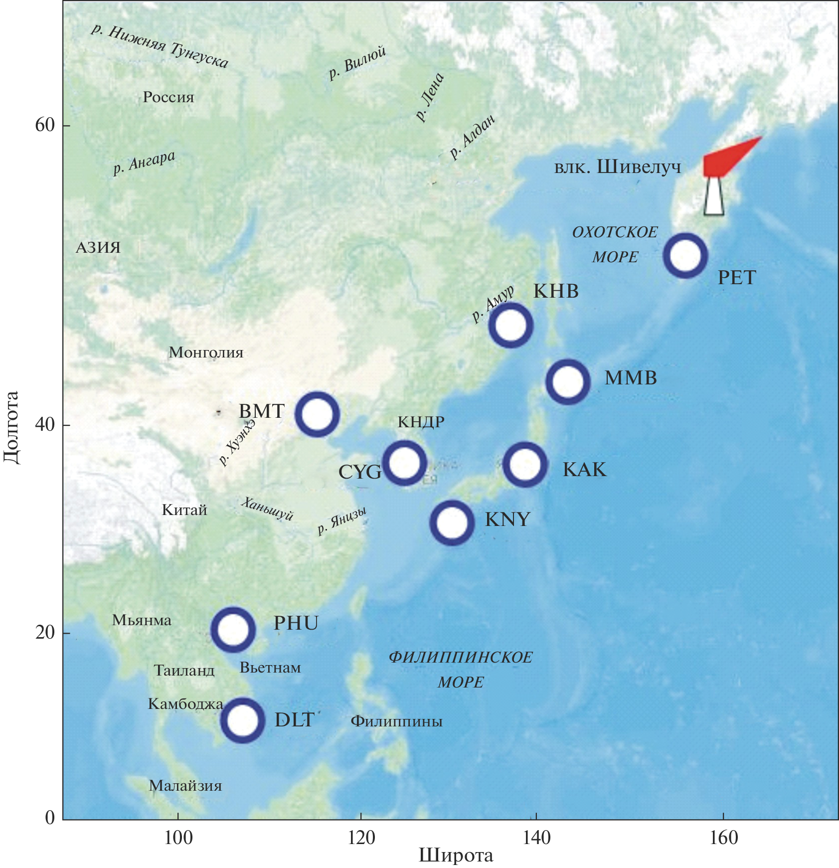 С привлечением результатов инструментальных наблюдений, выполненных в обсерваториях сети INTERMAGNET и на станции ионосферного зондирования “Вакканай” показано, что сильное извержение вулкана Шивелуч эффузионно-эксплозивного характера, произошедшее 10.04.2023 г., сопровождалось вариациями магнитного поля Земли, а также изменениями критической частоты слоя F2 ионосферы.