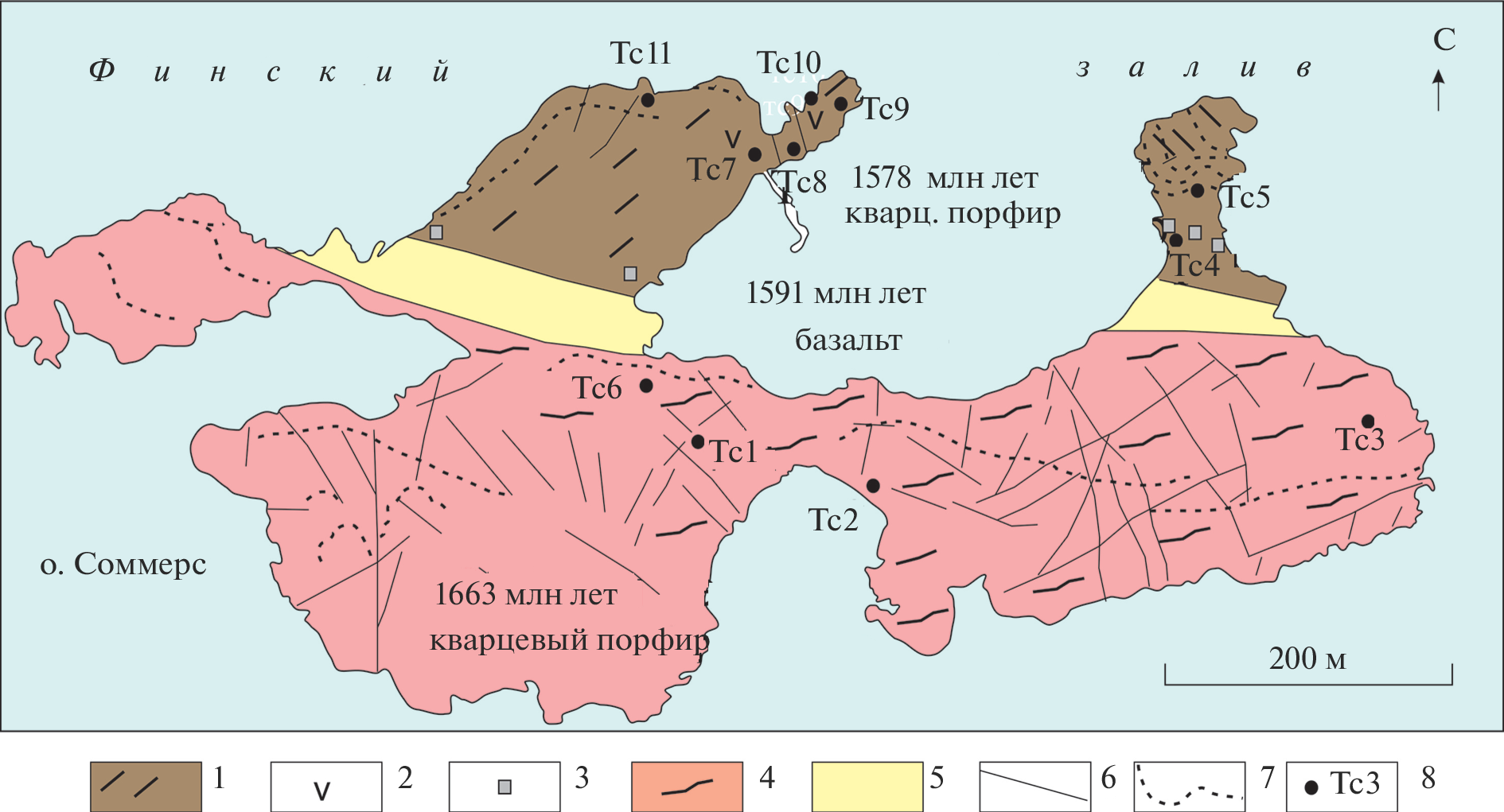 В статье представлены новые петрогеохимические данные пород из района Внешних островов Финского залива. Ранее кварцевые порфиры о. Гогланд рассматривались как эталон вулканических комагматов гранитов рапакиви Выборгского массива. На о. Соммерс выделено две эффузивных толши. “Южная” сложенная кварцевыми порфирами, с изотопным возрастом 1.66 млрд лет, поэтому их можно рассматривать как самые ранние проявления рифейской магматической активности в этом районе. В составе “Северной” толщи, кроме кварцевых порфиров, присутствуют трахибазальты, андезибазальты, дациты, а ее изотопный возраст 1.59‒1.57 млрд лет, что не соответствует значениям, рядом расположенного Выборгского массива 1.65‒1.63 млрд лет. Поэтому, несмотря на близость составов кварцевых порфиров и гранитов рапакиви, вулканиты не являются продуктами дифференциации исходной для гранитов магмы, а образовались независимо от них из однотипного источника, но в несколько другой структурной обстановке, позволяющей свободное их поступление на поверхность Земли.