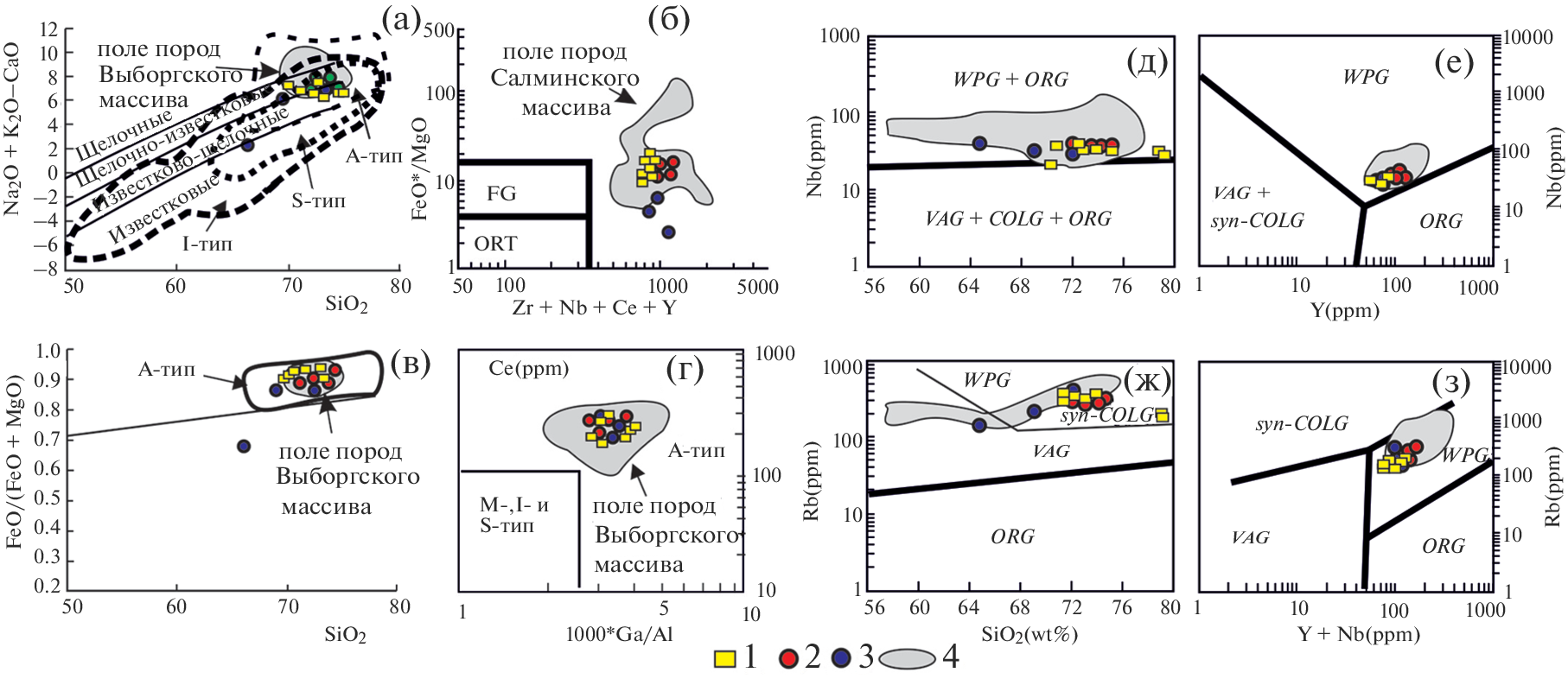 - Whalen J.B., Currie K.L., Chappel B.W. A-type granites: geochemichal characteristics, discrimination and petroge-nesis // Contrib. Mineral. Petrol. 1987. V. 95. P. 407‒419.