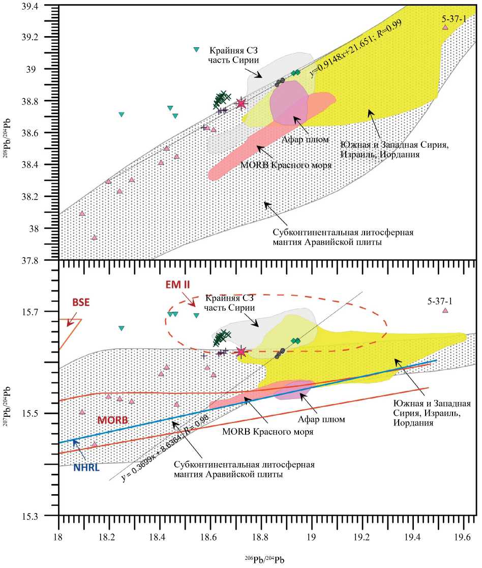 - Ma G.S.-K., Malpas J., Xenophontos C. et al. Petrogenesis of Latest Miocene Quaternary Continental IntraplateVolcanism along the Northern Dead Sea Fault System (Al Ghab HomsVolcanic Field), Western Syria: Evidence for Lithosphere Asthenosphere Interaction // J. Petrol. 2011. V. 52. № 2. P. 401–430.