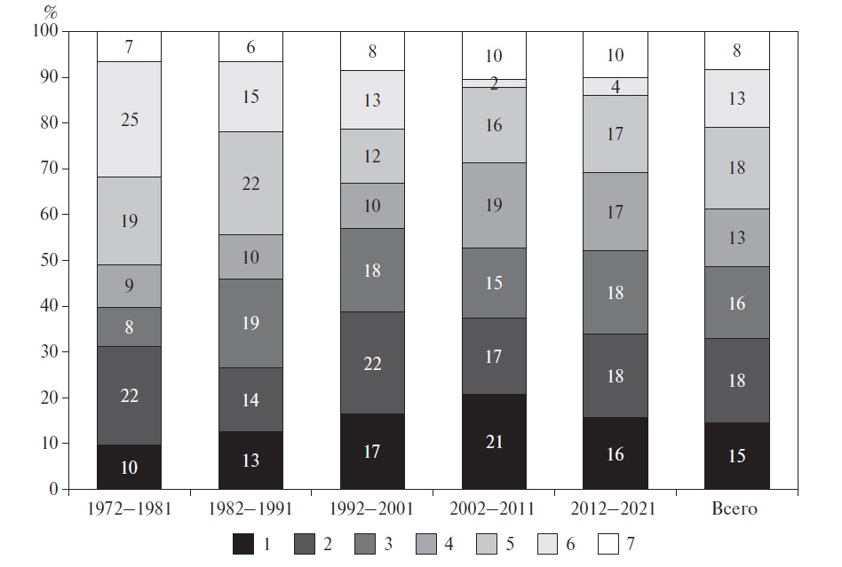 № п/п | 1972–1981 | 1982–1991 | 1992–2001 | 2002–2011 | 2012–2021 | |||||