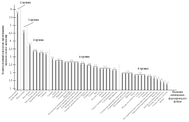 Рис. 2. Гистограмма распространенности заболеваний, формирующих фобии в группе мужчин