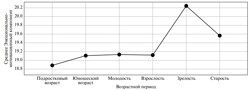 Рис. 3. Показатели шкалы “Эмоционально-мотивационный компонент” в разных возрастных группах