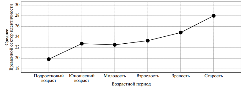 Рис. 6. Показатели шкалы “Временной сектор идентичности” в разных возрастных группах