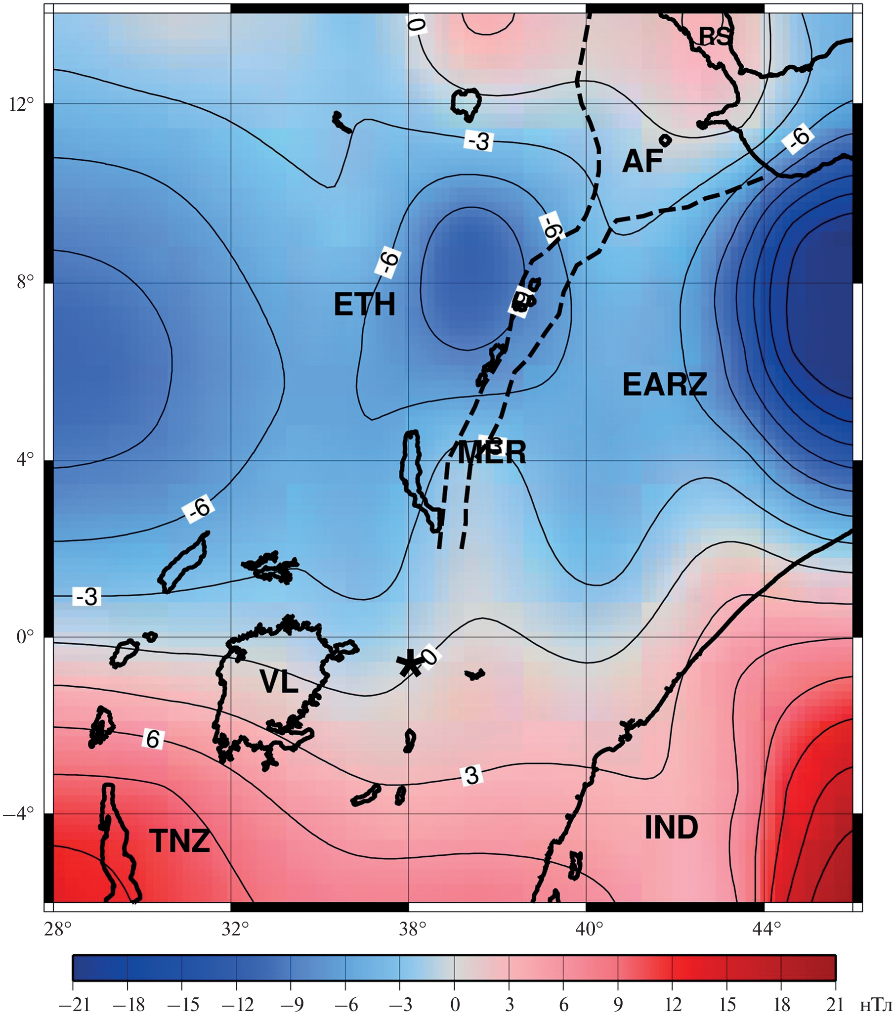 - Абрамова Л.М., Абрамова Д.Ю. Отражение процессов мантийного плюмового магматизма в литосферных магнитных аномалиях, полученных по данным спутника CHAMP // Исслед. Земли из космоса. 2021. № 4. С. 3–14. https://doi.org/10.31857/S0205961421040023