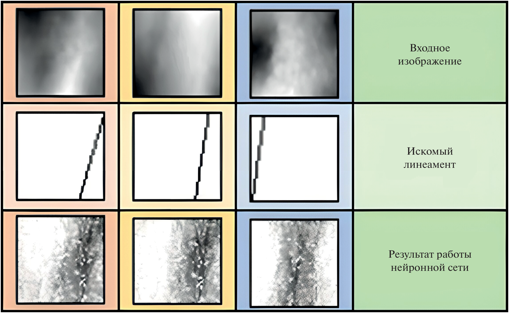 The purpose of the scientific work is to study the potential of neural network technologies in the field of extracting linear structures from digital terrain models SRTM. Linear structures, also known as lineaments, play an important role in the verification of known faults, the identification of fault-fracture structures, the detailing of the framework of discontinuous faults, as well as in the exploration of minerals. Their accurate and effective extraction in solving the designated tasks is of fundamental importance. The use of neural network technologies provides a number of advantages over sequential algorithms, including the ability to search for universal criteria for selecting lineaments based on a training sample. The paper considers a comprehensive innovative methodology that includes several key stages. The first stage is the author’s method of data preparation, which helps to ensure the quality of the training sample and minimize the impact of noise. The second stage is to develop an algorithm for vectorizing the results of the neural network, which allows you to easily export the results (lineaments) to a geographic information system (GIS). The third stage provides a method for minimizing the noise component of the training sample and optimizing the selection of synaptic weighting coefficients by retraining the neural network using simulated data reflecting various localization conditions of the lineaments. To verify the results obtained, a spatial comparison of linear structures extracted by a neural network and lineaments isolated by the operator was carried out. The results of this comparison demonstrate the high potential of the proposed approach and show that the use of neural network technologies is an actual and promising approach to solving the problem of extracting linear structures from digital terrain models. Positive conclusions are made about the expediency of using the results obtained for their practical application in the field of Earth sciences.