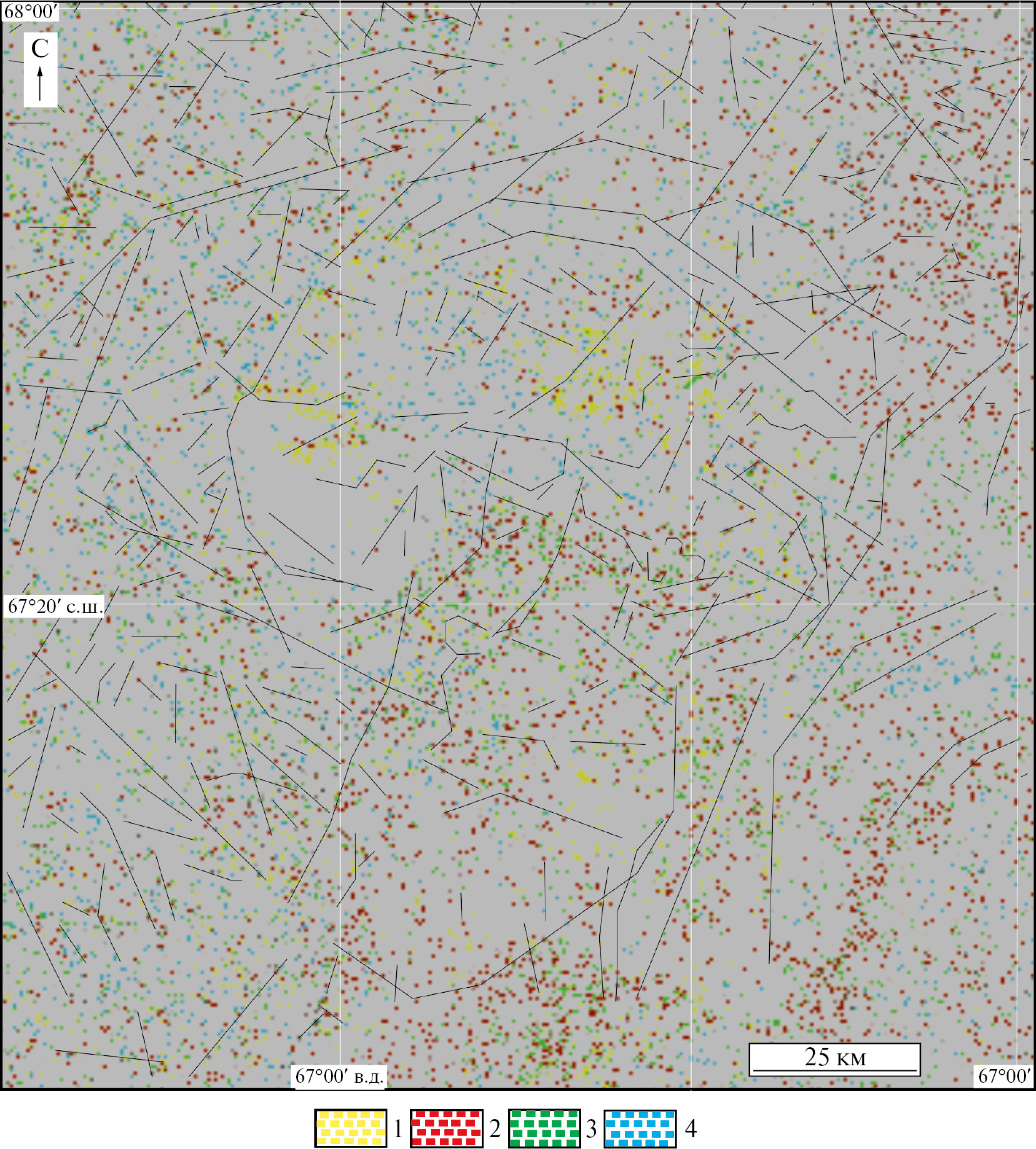 Методика выделения линеаментов ручным способом на основе КС приведена в работе (Иванова и др., 2020).