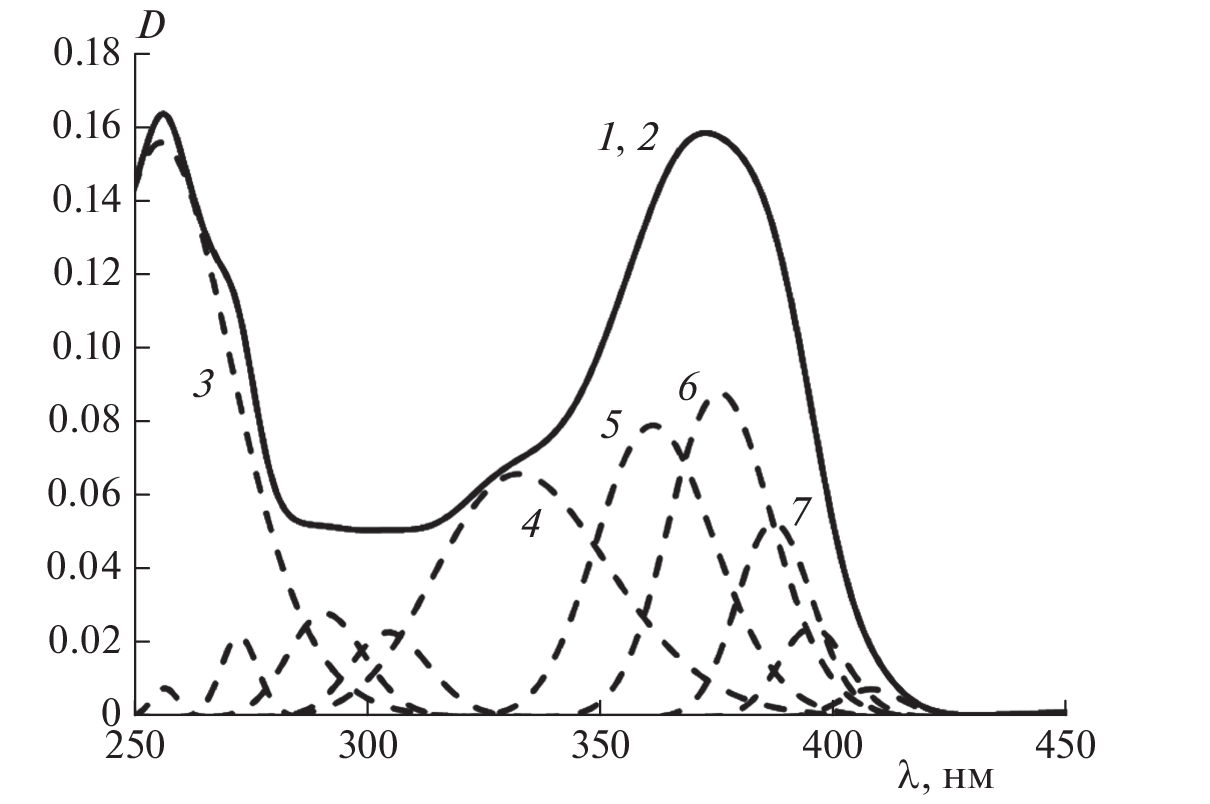 The parameters of the UV spectra of quercetin, dihydroquercetin, genistein, preparations of natural phospholipids (PLs), and mixtures of flavonoids with PLs in chloroform are determined by mathematical processing of these spectra using the Gauss method. It is shown that the position of the maximum of band II in the UV spectra of the studied flavonoids does not depend on the nature of the solvent, and the dependence of the optical density of bands II and I in solutions of these flavonoids on their concentration obeys the Bouguer–Lambert–Beer law. It is found that the parameters of the UV spectra of natural lipids significantly depend on the polarity of the solvent and the composition of PLs. Using genistein as an example, it is shown that the flavonoid interacts with the conjugated double bonds of fatty acids of PLs and nitrogen- and phosphorus-containing groups of PLs also participate in the formation of complexes.