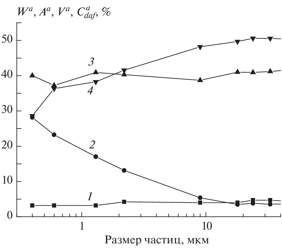 The ignition of microparticles of low-metamorphosed (long-flame gas grade (LFGG)) coal for fractions with a distribution in the size range d = 0.4–33 µm under the action of laser pulses (1064 nm, 120 µs, 1.3 J) is studied. The coincidence of the kinetic characteristics of coal ignition under the action of laser pulses with different energy densities on samples in both narrow and wide particle size ranges is established. The minimum values of the three threshold planes of laser energy studied for the stages of ignition are obtained for the fraction of coal particles with a size of 2.2 μm. When working with coal dust, it should be taken into account that when exposed to thermal energy sources, particles of 1 to 10 microns are the most easily flammable.