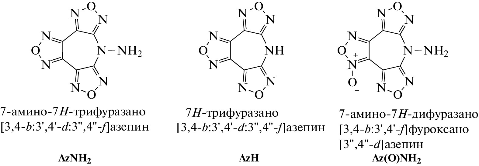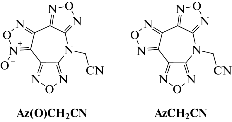 7-Cyanomethyl-7Н-difurazano[3,4-b:3′,4′-f]furoxano[3″,4″-d]azepine (Az(O)CH2CN) and 7-cyanomethyl-7Н-trifurazano[3,4-b:3′,4′-d:3″,4″-f]azepine (AzCH2CN) are synthesized for the first time as potential dispersants of solid fuels for gas generator engines; their molecular structure, enthalpies of combustion, and formation are determined; and the relative aircraft flight range is estimated when using Az(O)CH2CN and AzCH2CN as fuel dispersants.