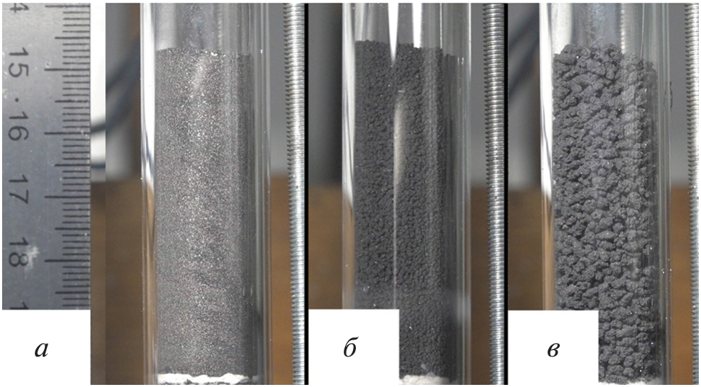 Впервые выполнено сравнительное исследование макрокинетических параметров горения порошковых и гранулированных смесей Ti + C при разбавлении их металлическими порошками. Скорости горения порошковых смесей (Ti + C) + 20% Me (Me = Ni, Cu) оказались выше, чем смеси Ti + C, несмотря на более низкую температуру горения, что противоречит теоретическим представлениям о зависимости скорости горения от максимальной температуры в конденсированной гетерогенной среде. При разбавлении смеси Ti + C порошками Ti или TiC такого противоречия нет. Полученные данные объяснены с помощью конвективно-кондуктивной модели горения сильным влиянием примесного газовыделения из титана перед фронтом горения. По значениям скорости горения смесей с гранулами разных размеров получены значения времени передачи горения между гранулами и скорости горения вещества внутри гранул, а также количественная оценка тормозящего влияния примесных газов в порошковых смесях. Для смеси (Ti + C) + 20% Ni время воспламенения гранул оказалось меньше 1 мс. Путем сравнения параметров горения гранулированных смесей титана с сажей, разбавленных другими металлическими порошками и карбидом титана, объяснена эффективность передачи горения между гранулами при наличии горячего расплава Ni.
