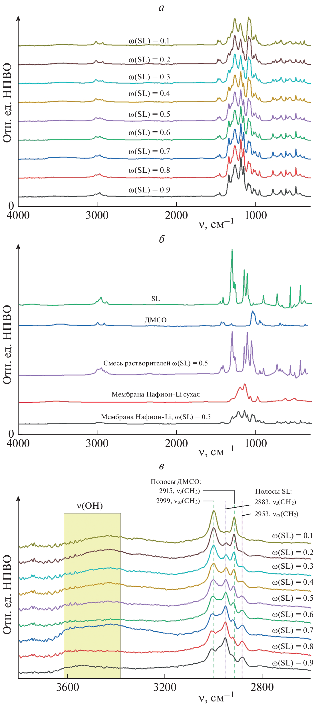 The effect of the composition of a binary plasticizing mixture based on dimethyl sulfoxide and sulfolane on the physicochemical properties of the lithium form of the Nafion membrane is studied. To explain the behavior of the electrotransport properties of membranes, experimental studies of intermolecular interactions, thermal behavior, and the ion-transport properties of the obtained lithium-conducting polyelectrolytes are carried out using IR spectroscopy, simultaneous thermal analysis, and impedance spectroscopy. A relationship is found between the shift of the eutectic point to the region of a lower content of sulfolane compared to bulk solvents and the composition of the plasticizer, in which the samples had the best conductivity of 0.76 mS/cm at 30°C.
