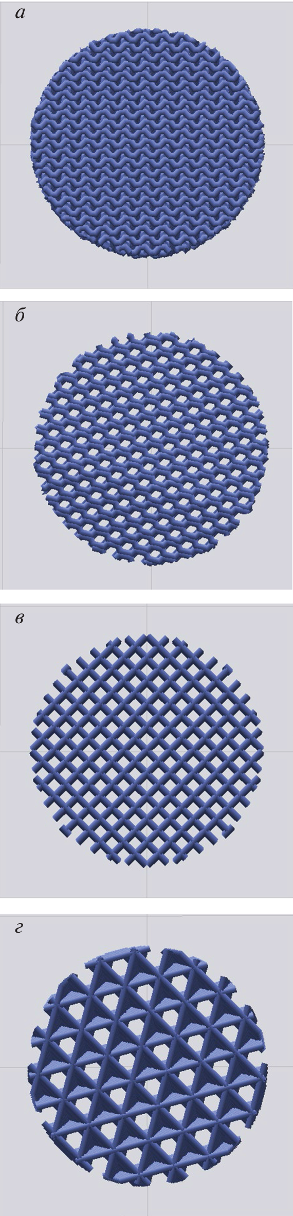 surface structure (gyroid), cube, grid, and honeycomb) and shape changes of individual implants by