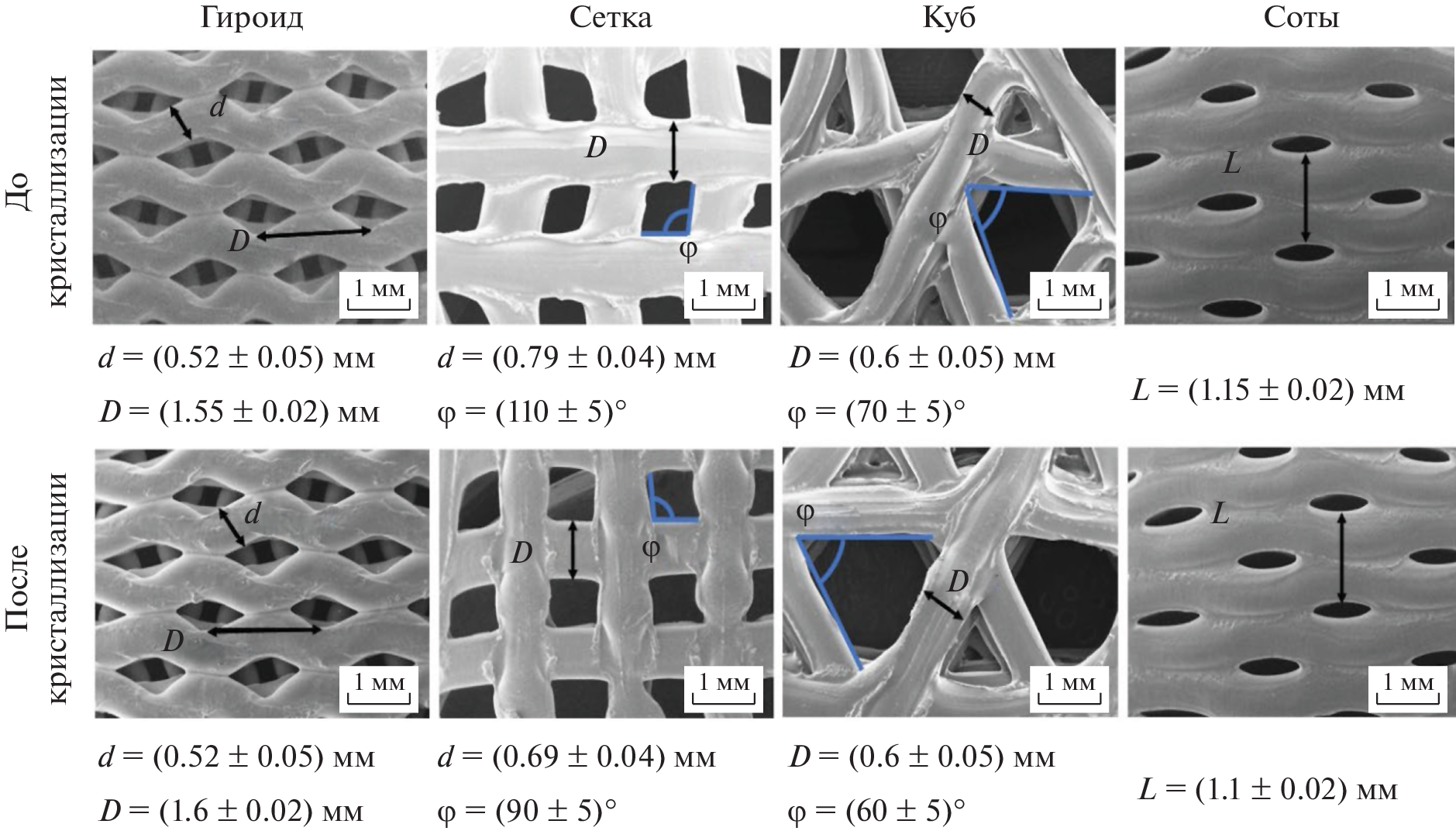 implant after crystallization. The results of the computed tomography show that structures with a triply periodic